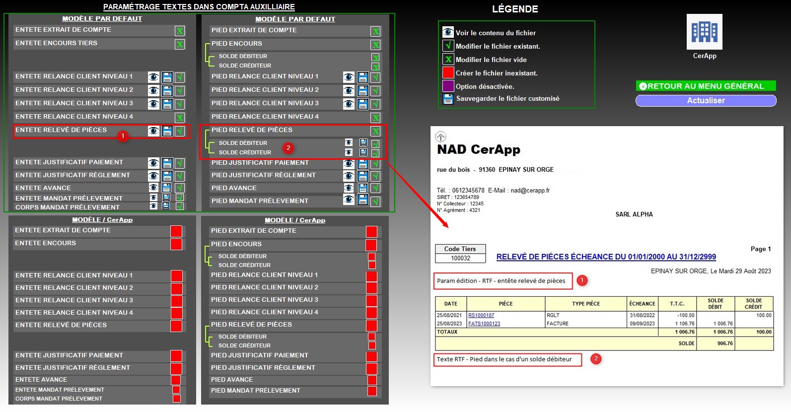 Index -> Compta Auxiliaire -> Relevés de pièces (Accessible depuis une entité admin)