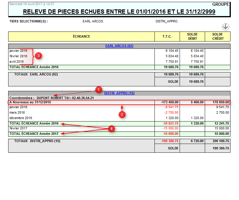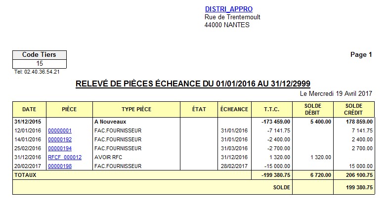 Le relevé de pièces liste les factures des tiers, par date d’échéance.