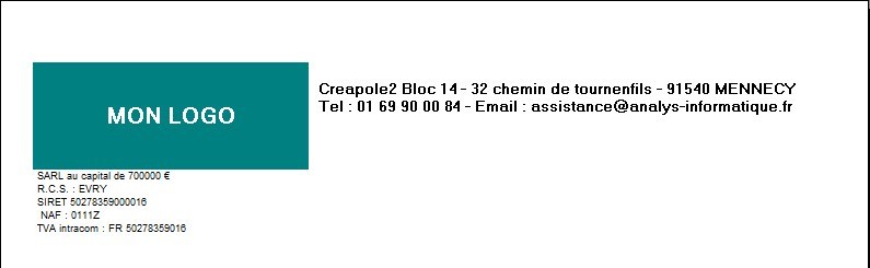 Présente dans les éditions de pièces, encours, relances, relevés, courriers, etc ...