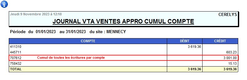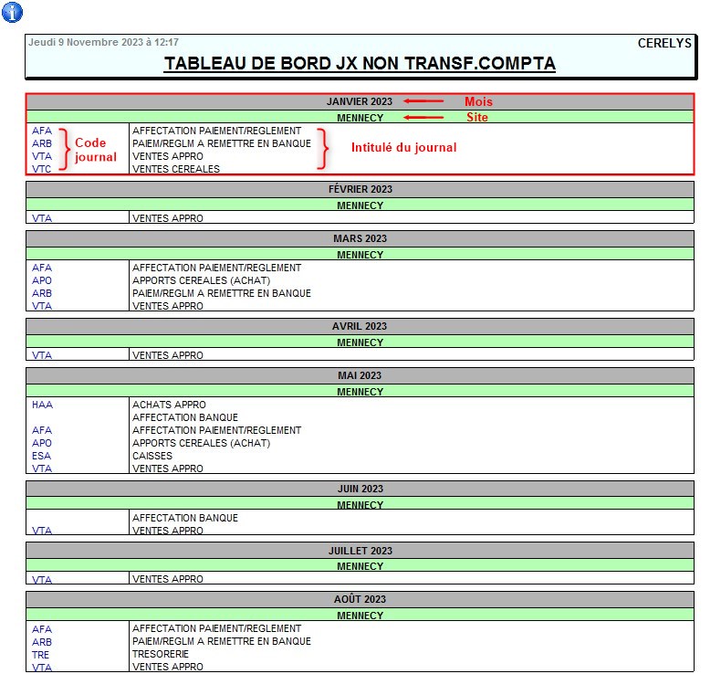 | Code journal | Ouvre l'édition du journal mensuel correspondant |