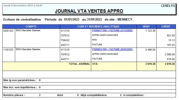 Rapport écritures des journaux non transférés en compta