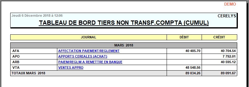 Index -> journaux Comptable -> Rapp. Ecr. Tiers Non Transf. Cpta