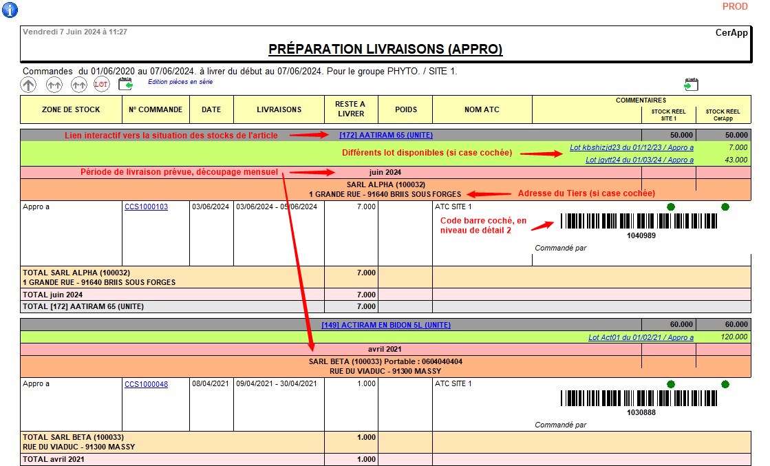 | Tri par | Axe, Article, Tiers, Période de livraison prévue avec découpage périodique… |