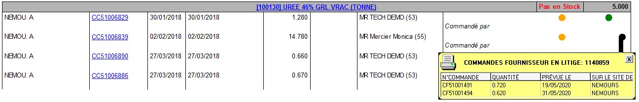 - Le stock réel évolutif est négatif mais une livraison est prévue dans un délai court