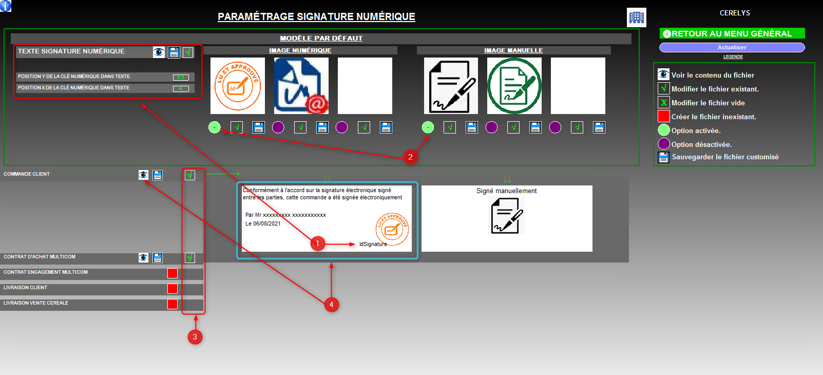 Ensemble d'options paramétrables pour changer l'aspect des signatures numériques dans les éditions de contrats.