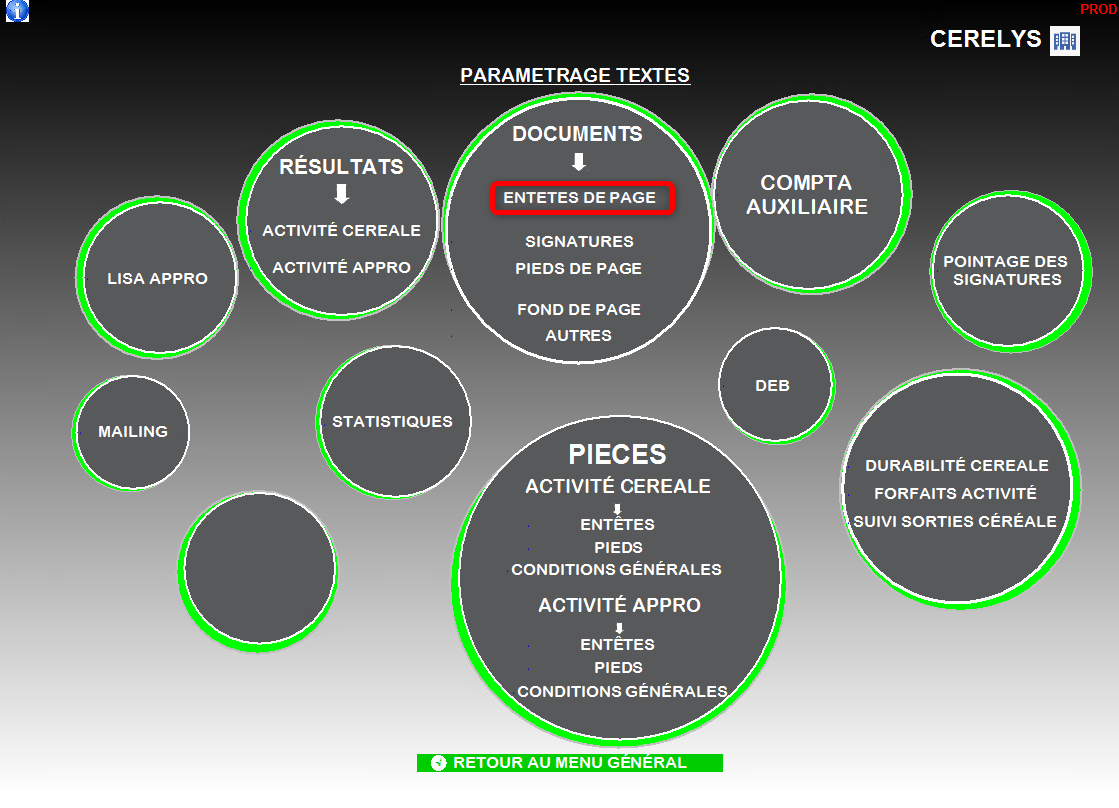 Paramétrages Editions : Textes Fichiers RTF - Textes Entêtes de page
