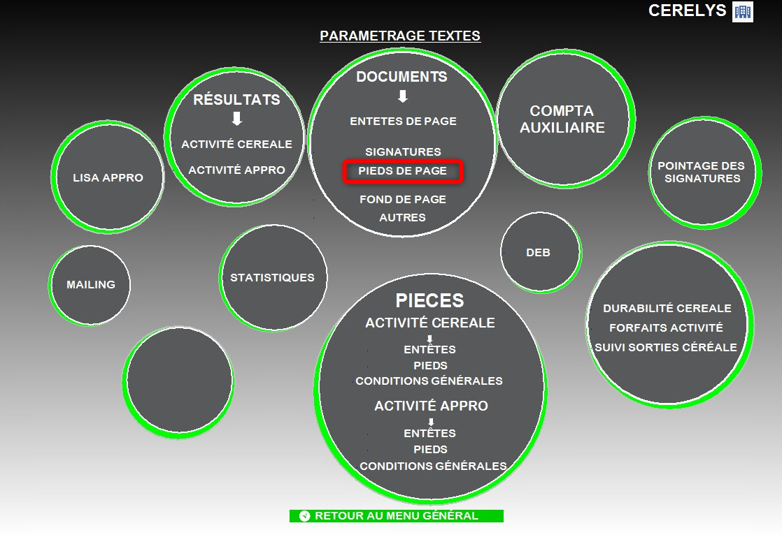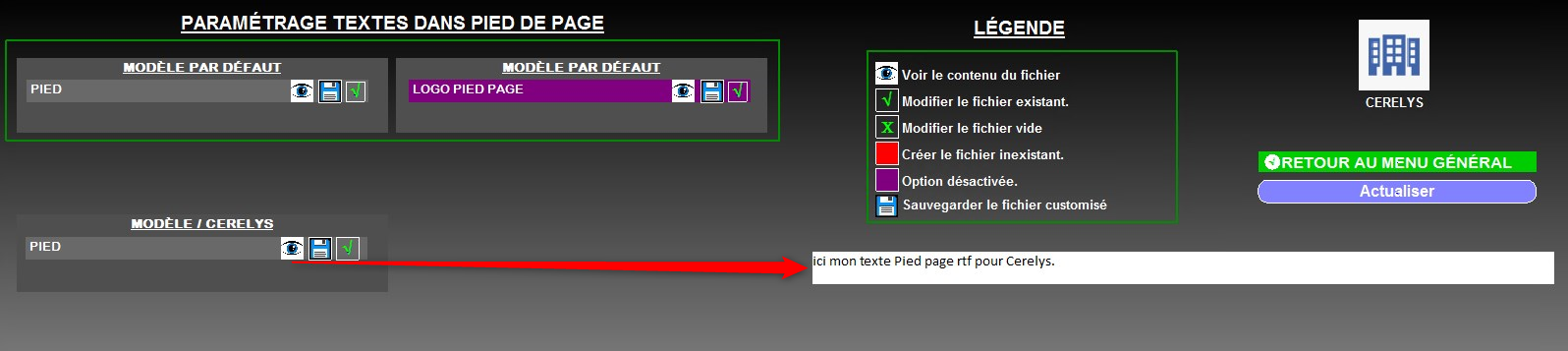 Paramétrages Editions : Textes Fichiers RTF - Pieds de Page