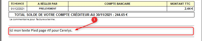 1Visualisation du contenu du pied de la page dans une édition de pièce.