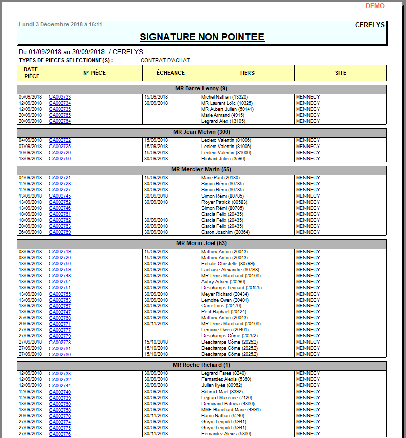Rapport de liste des pièces prévisionnelles pointées ou à pointer.
