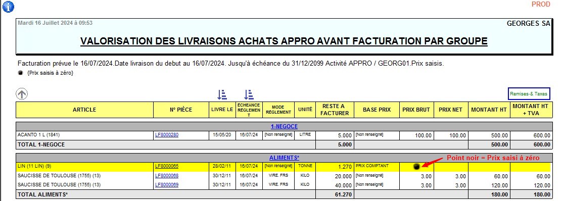 | Inclus les pièces non révisées | A cocher pour tenir compte des livraisons non révisées. |