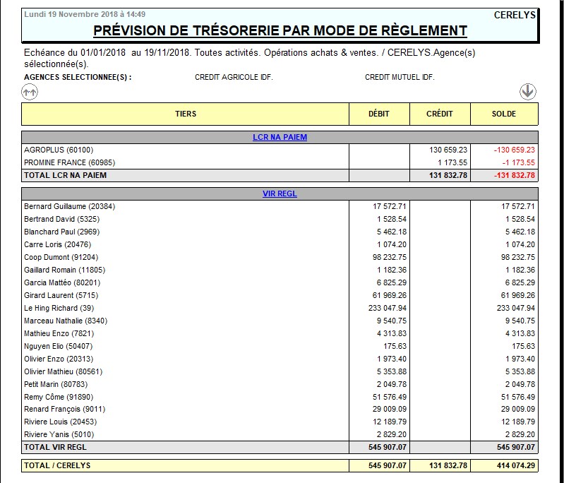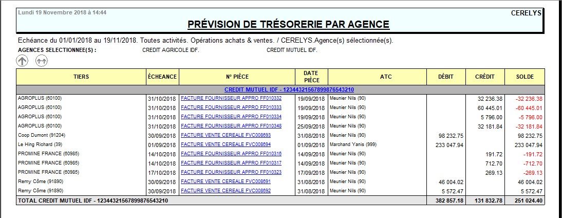 | Tri par | Agence, ATC principal, Échéance, Mode de règlement, Découpage périodique, Tiers. |
