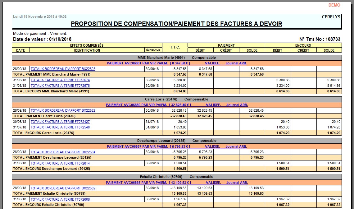 | Mode de paiement | Sélectionner Chèque, Virement, Prélèvement, etc, ou Tous. |