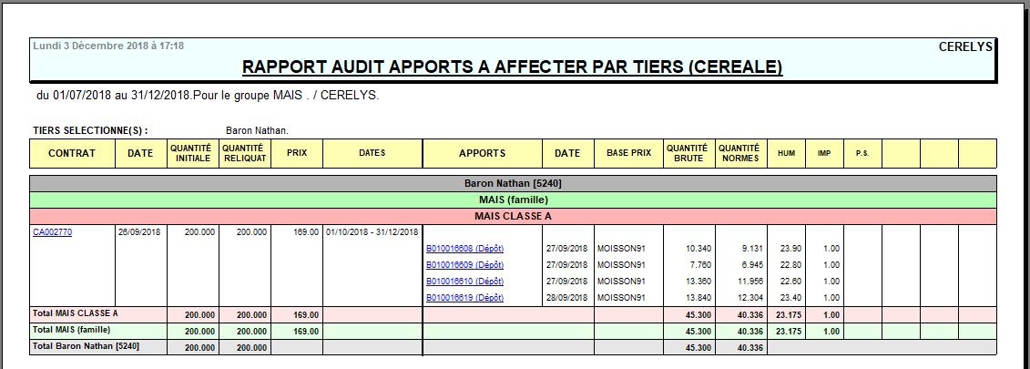 Index -> Résultats Céréales -> Audit apports à affecter