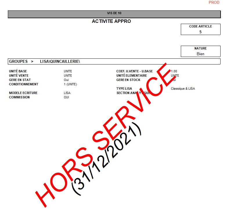 | Tri | par Article, Date, quantité stock. Le tri pourra être modifié au sein de l'édition par un lien interactif |
