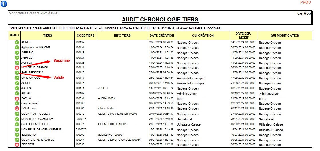 Index -> Rapports Audit -> Audit Chronologie Tiers