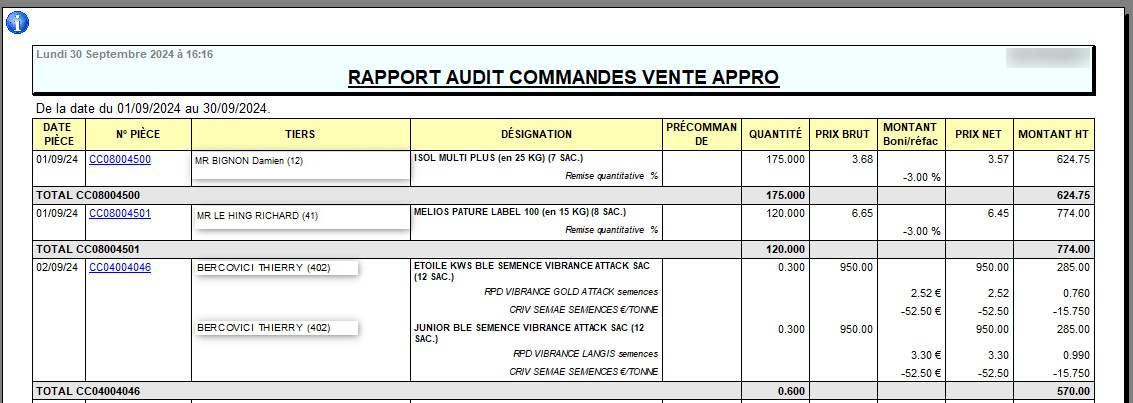 Index -> Rapports Audit -> Audit Commandes Vente Appro