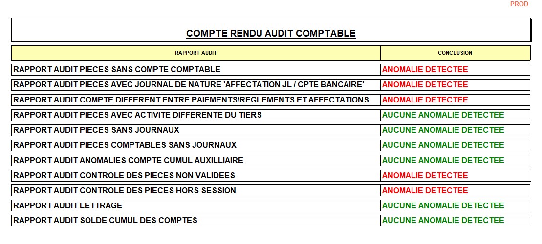 Index -> Rapports Audit -> Audit Comptable