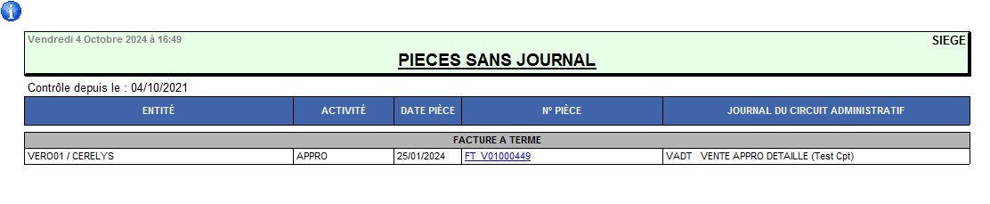 | Rapport Audit pièces sans journal | Recherche des pièces sans journal comptable dans l'entête |