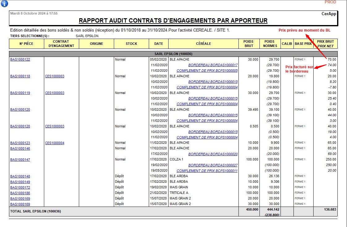 | Prix/Bons facturés | A cocher pour indiquer le prix sur le bon d'apport facturé qui peut être différent du prix final facturé |