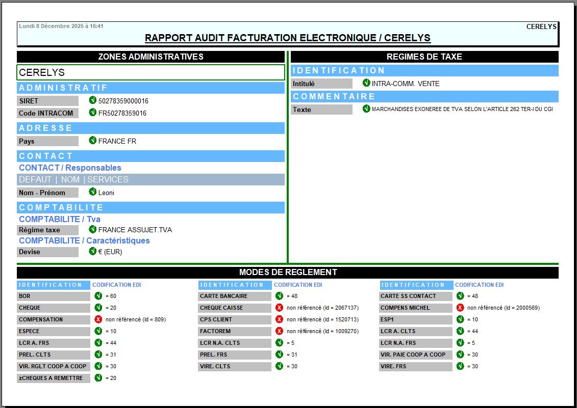 Index -> Rapports Audit -> Audit facturation electronique