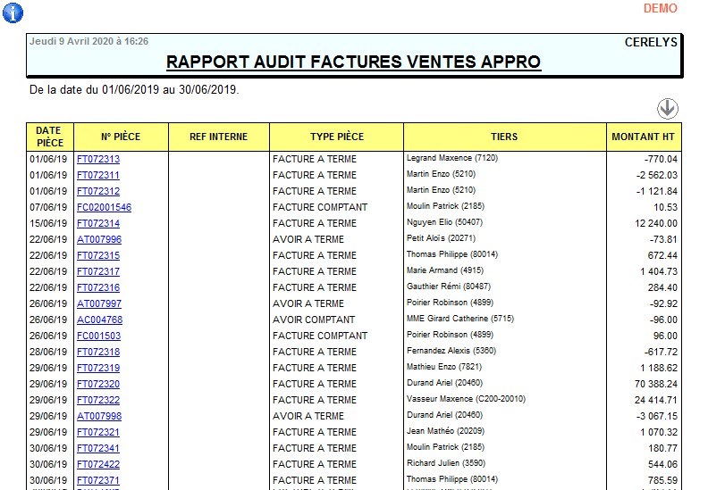 Index -> Rapports Audit -> Audit facture Appro