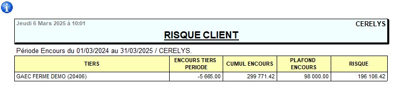 Rapport de liste de solde cumul compte débiteur par tiers, en tenant compte du plafond d'encours.