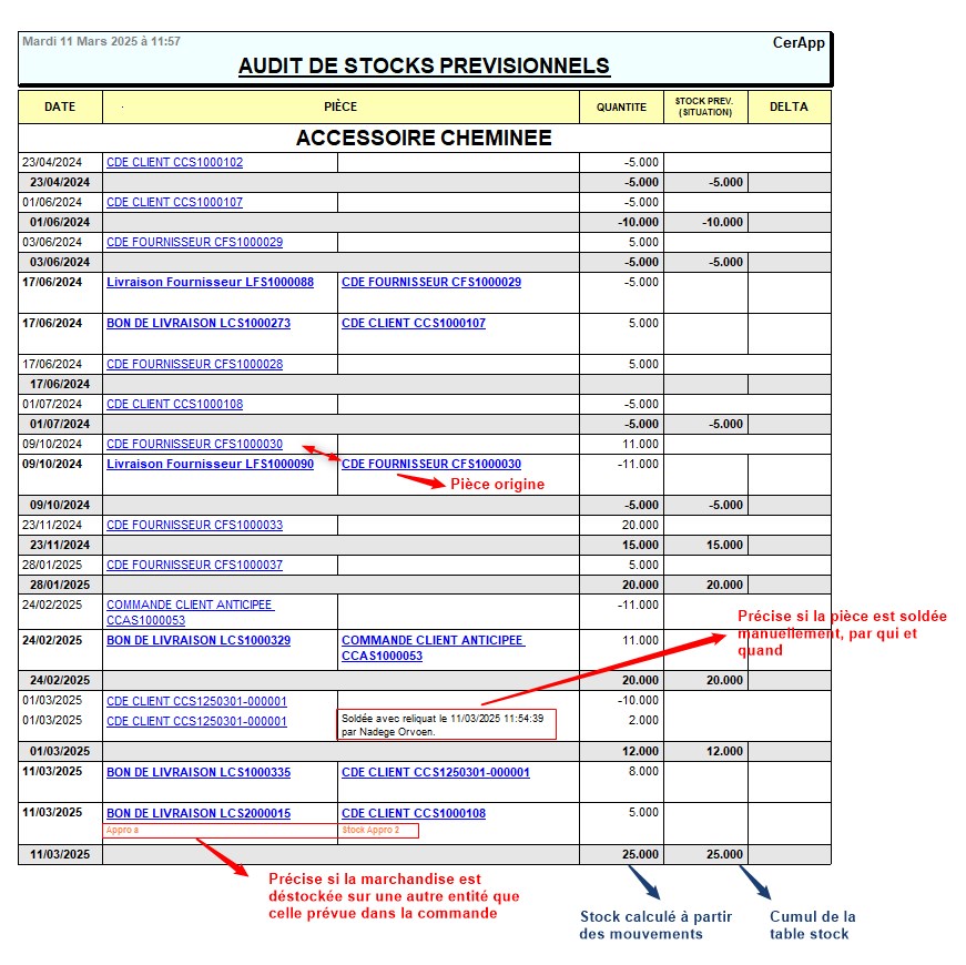 Rapport d'anomalie entre la table Stock et les mouvements ou les commandes.