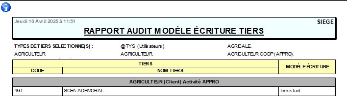 | Audit modèle écriture | A cocher pour voir les tiers sans modèle d'écriture ??? |