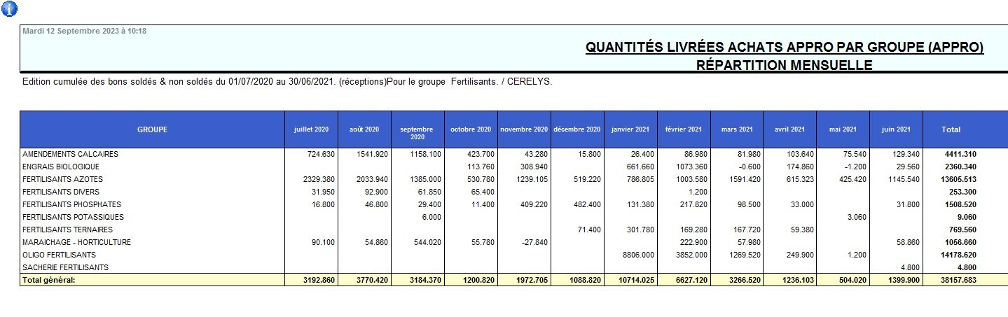 - Répartition = Quantités livrées sous forme de tableau croisé.