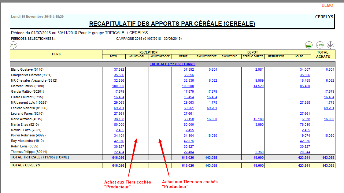 RÉCEPTION = Apports de type normal issus des agriculteurs (Achat négoce inclus) + les mises en dépôt.