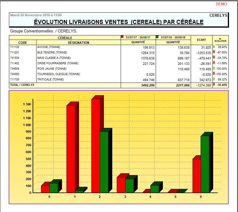 - Évolution période = Comparaison des Livraisons entre 2 périodes (N & N-1 par exemple).