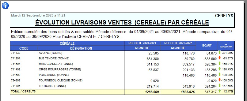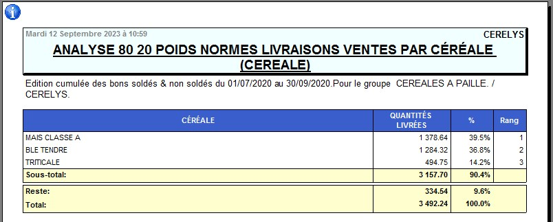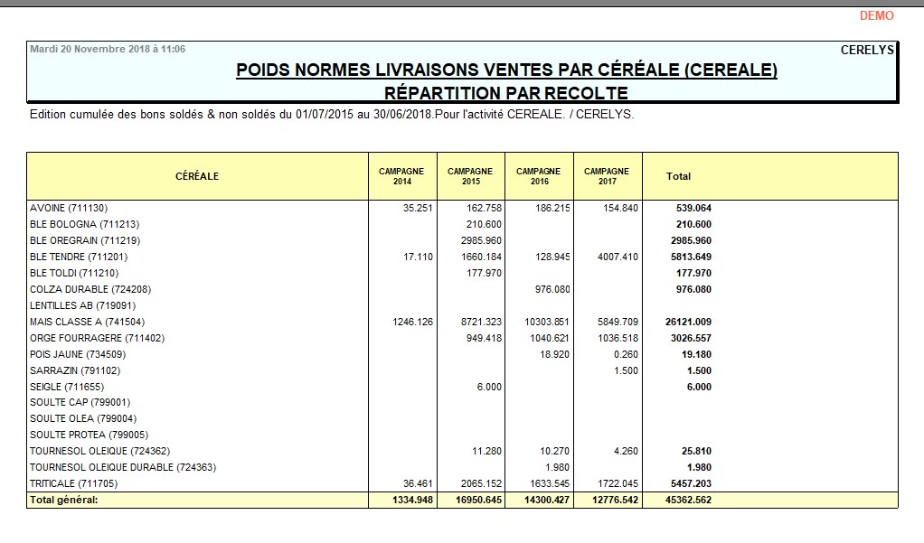 Rapport de situation quantitative des variétés de céréale livrées.
