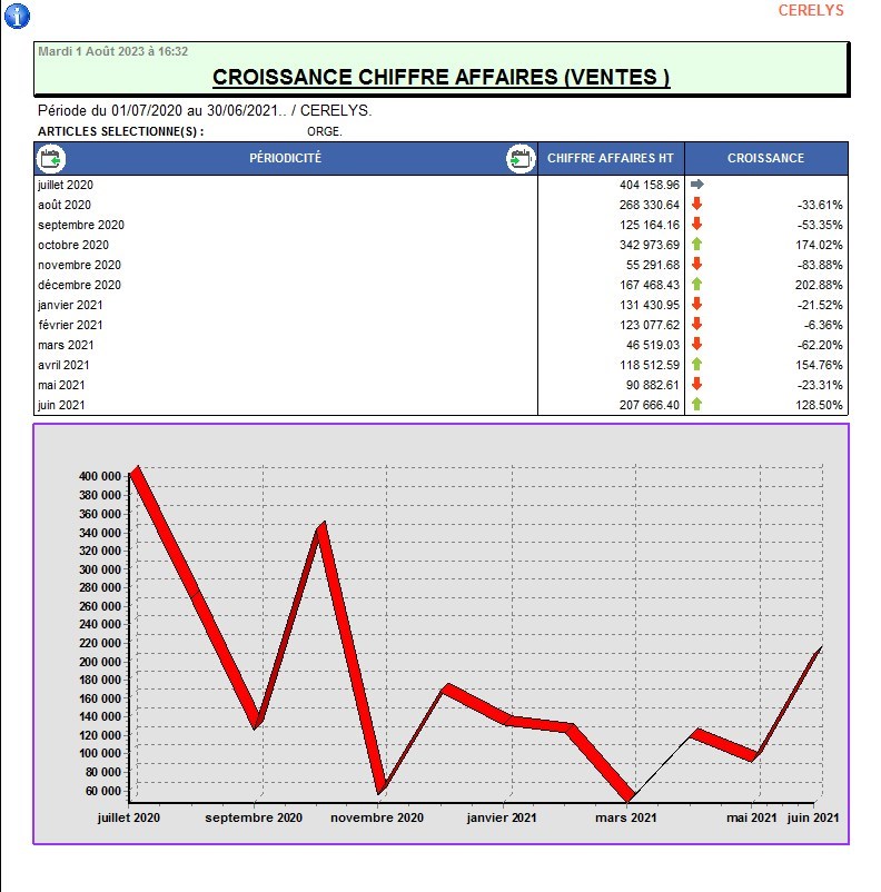 Comparaison du chiffre d'affaires entre 2 périodes (N & N-1 par exemple).