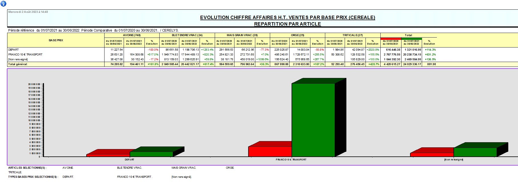 Chiffre d'affaires - Ventes Céréale