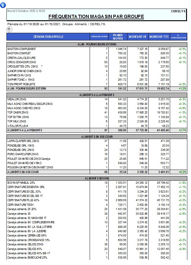 | Niveau de détail | Visible si tri par Groupe 1 : Total pour la période 2 : Avec détail des articles du groupe |