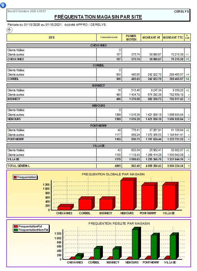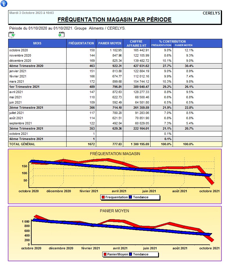 Rapport d'analyse et d’observation du panier moyen et de la fréquentation des magasins sur une période.