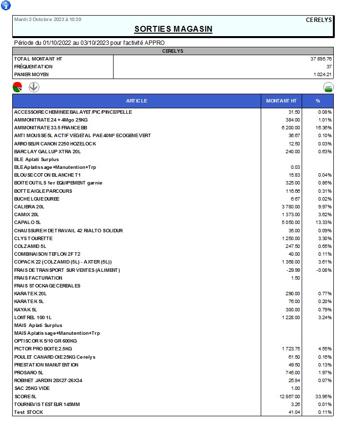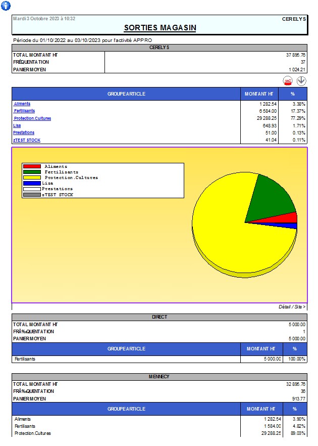 - le panier moyen avec pourcentage de contribution par groupe de famille.