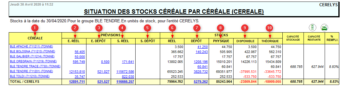 6 STOCK RÉEL = Quantités entrées de type stockage normal - Quantités sorties de type stockage normal.
