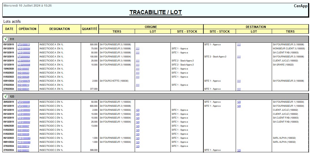 Rapport détaillé de la vie d'un lot, depuis sa création (Ouverture d'un lot) jusqu'à sa non présence dans l'entreprise (Fermeture d'un lot).