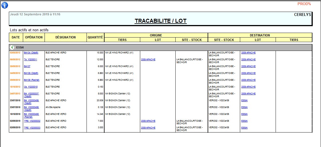 Index -> Traçabilité Céréale -> Traçabilité des lots