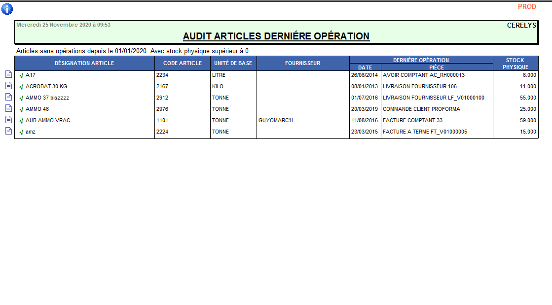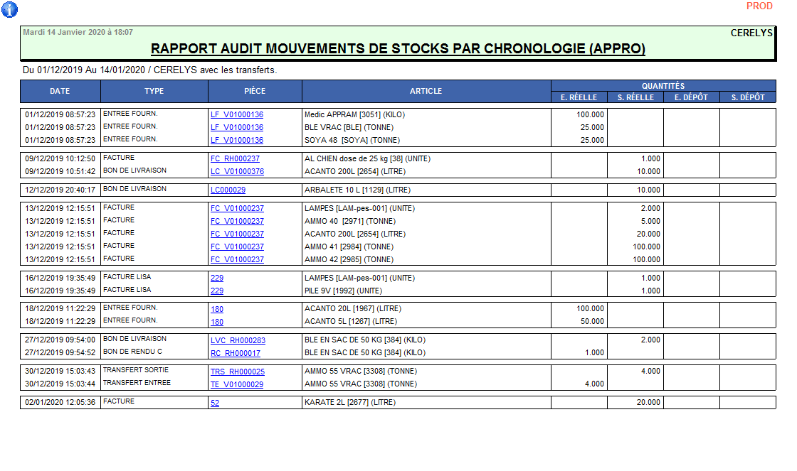 #3459 - RELANCE : Edition de contrôle. - [Appro - Céré]