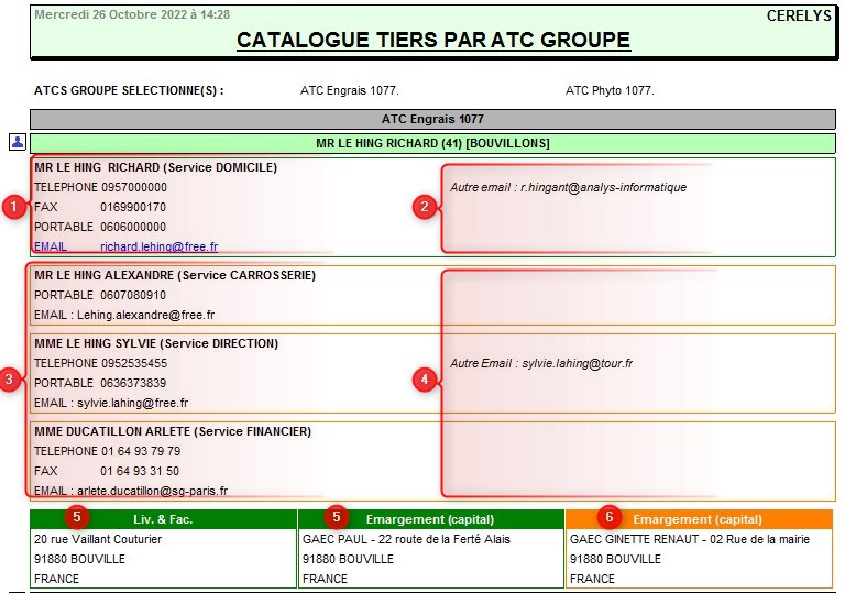 Nouveaux champs : Téléphone / Portable / Mail / Adresse