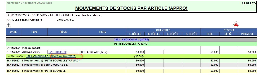 Si aucune taxe RPD n'était définie sur l'article ou sur ses groupes et que la ligne article a plusieurs lots, seul le dernier lot était pris en compte dans le registre niveau 4. Maintenant, le total général, qui est égal à la somme des quantités des lots, correspond bien à la somme des quantités des articles.