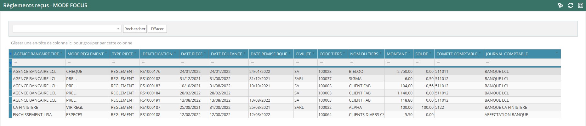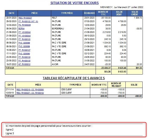 WIDGETS : TIERS/PROFIL/Détail de l'encours
