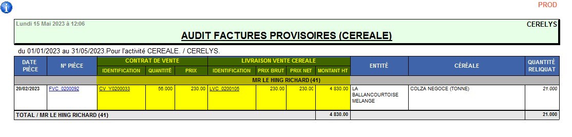#5191 - EXTRACTION COMPTA JOURNAUX MATIERES : Ventilation comptable des bonification/réfactions de prix par code TVA .