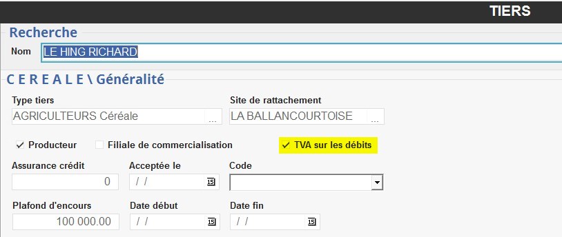 2La case 'TVA sur les débits' doit être coché dans la maintenance du tiers :